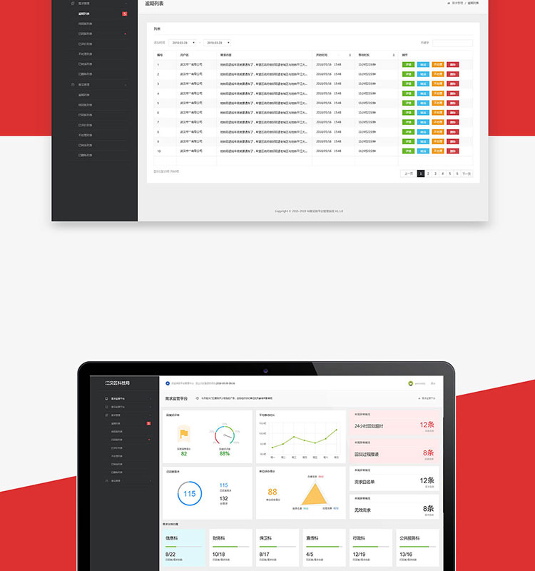 功能:企业需求登记、个人意见反馈,局系统多角色管控平台及指挥中心系统。